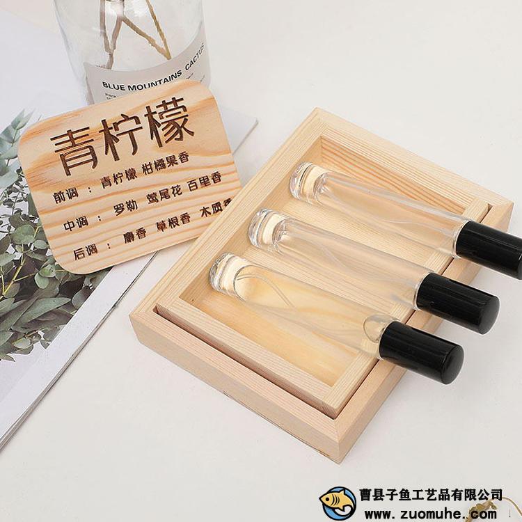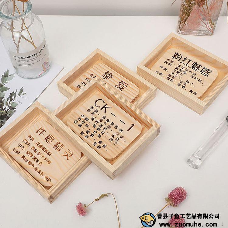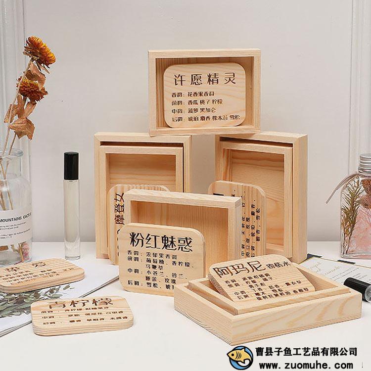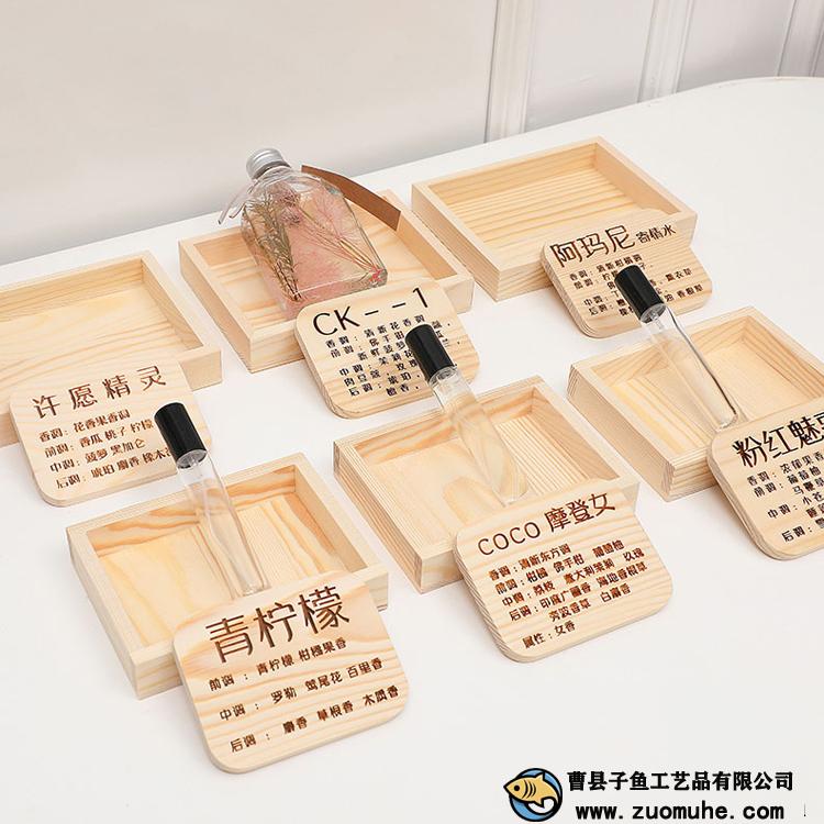 當前位置:首頁 > 木制包裝盒 > 小樣香水木片夜市擺攤顯示用的香水木盒展示招牌加工定做